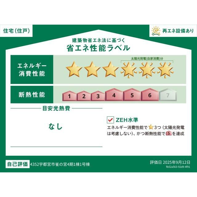 | エネルギー消費性能 | ★★★★★★(削減率50%達成) | 断熱性能 | 6段階/7段階中 |
